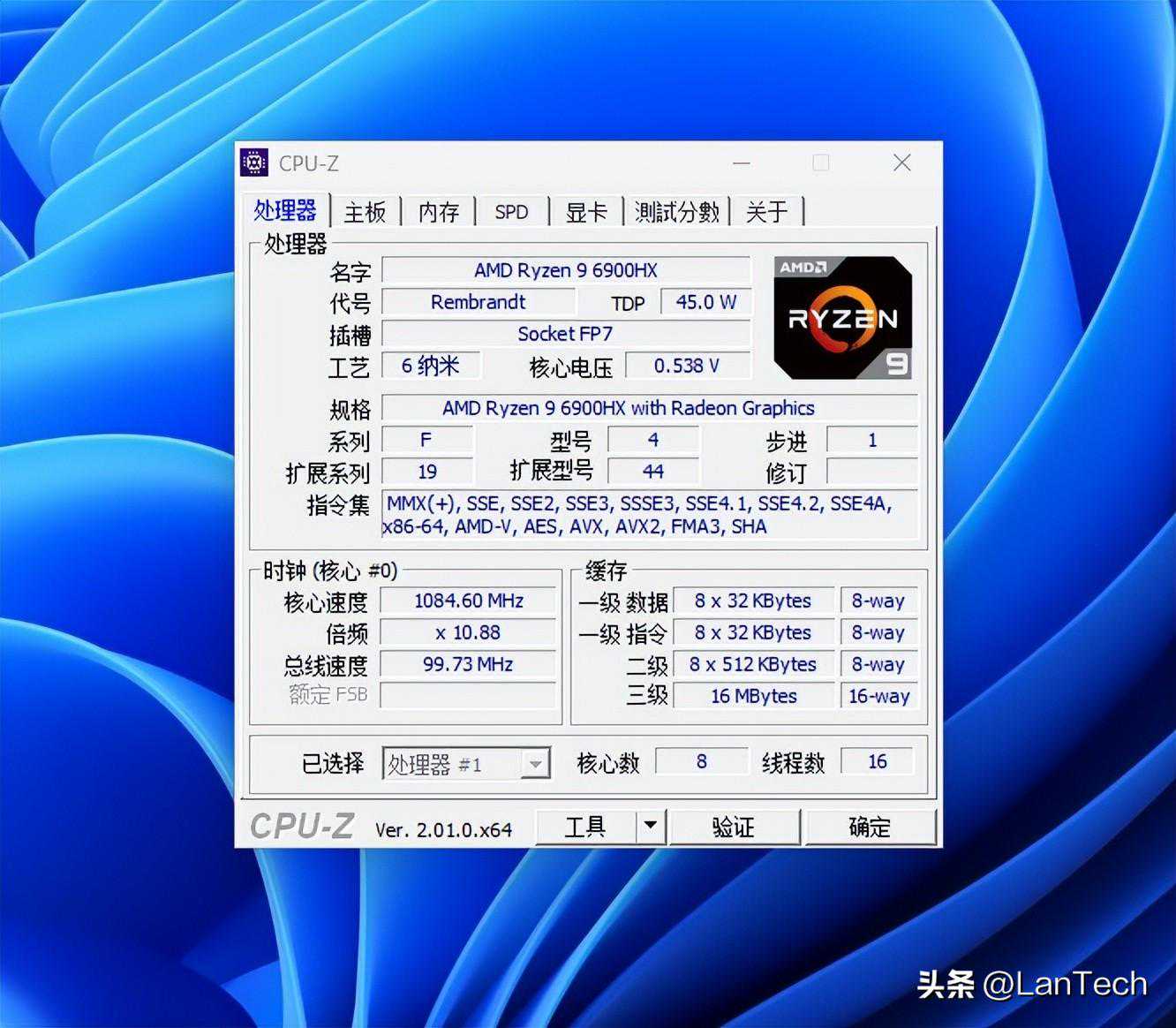 处理器部分,零刻GTR6高性能迷你电脑的R9-6900HX代号Rembrandt,采用8核心16线程: