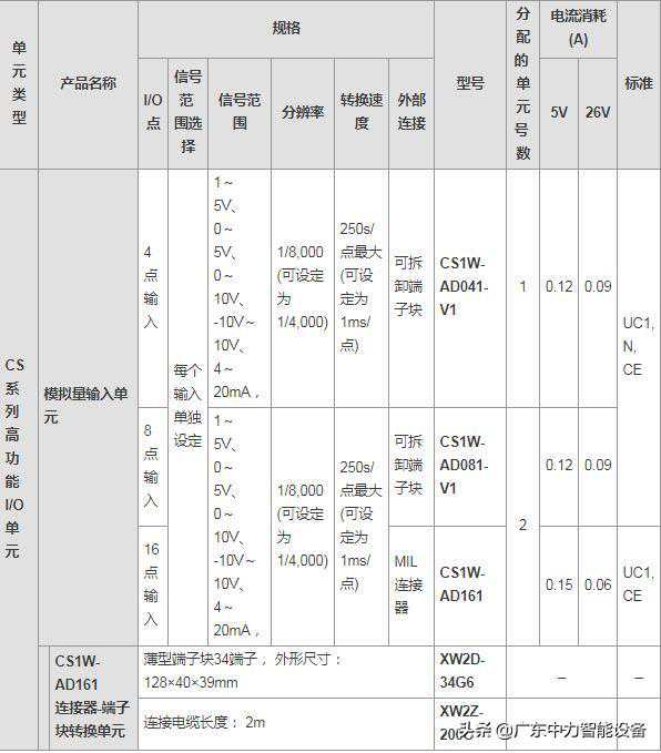 欧姆龙可编程控制器CS系列模拟量I/O单元CS1W-AD性能1