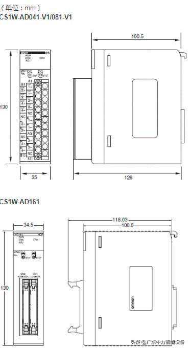 欧姆龙可编程控制器CS系列模拟量I/O单元CS1W-AD外形尺寸2