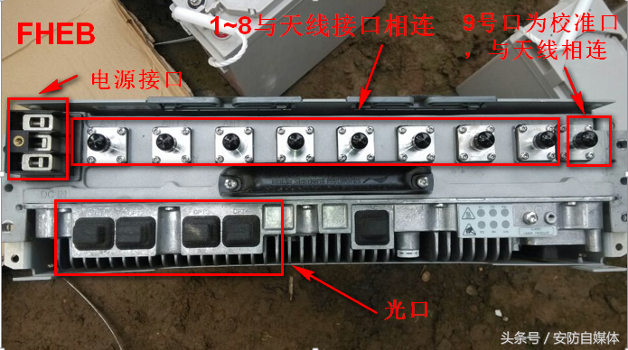 电信项目使用的RRU,包括:电源接口,光口、6个天线接口,用来与天线传递信号。电信基站FXEB型号RRU如下图所示:
