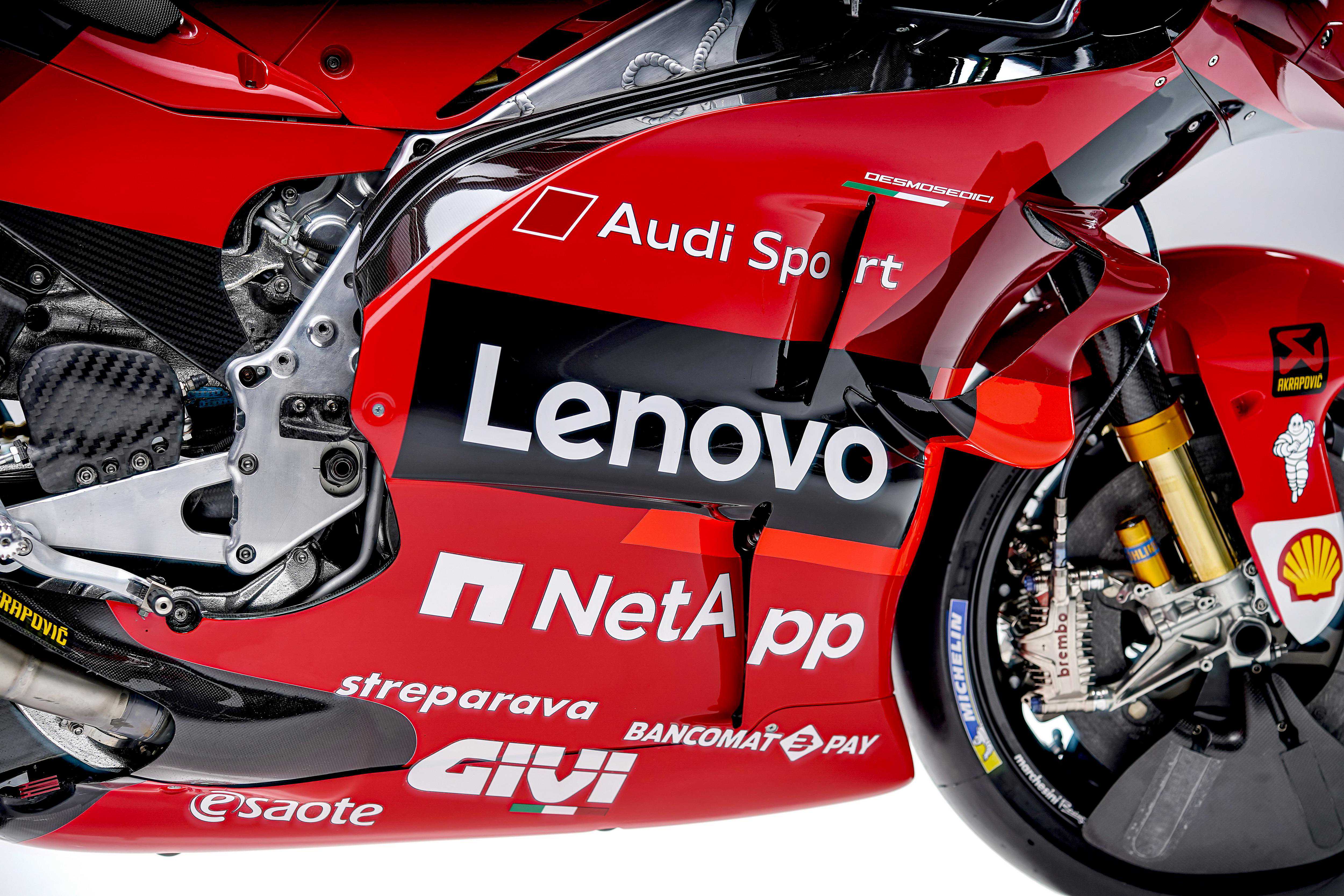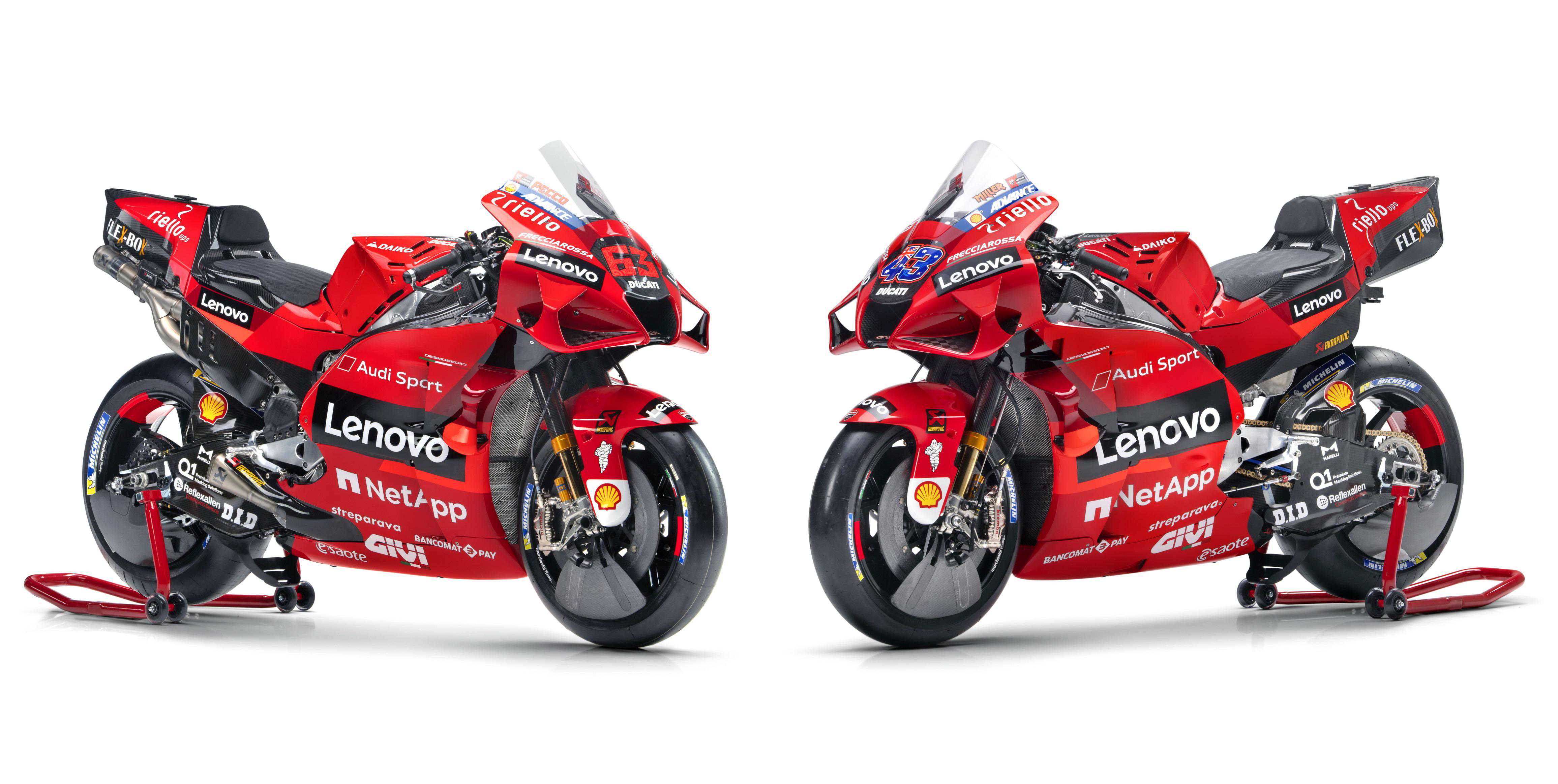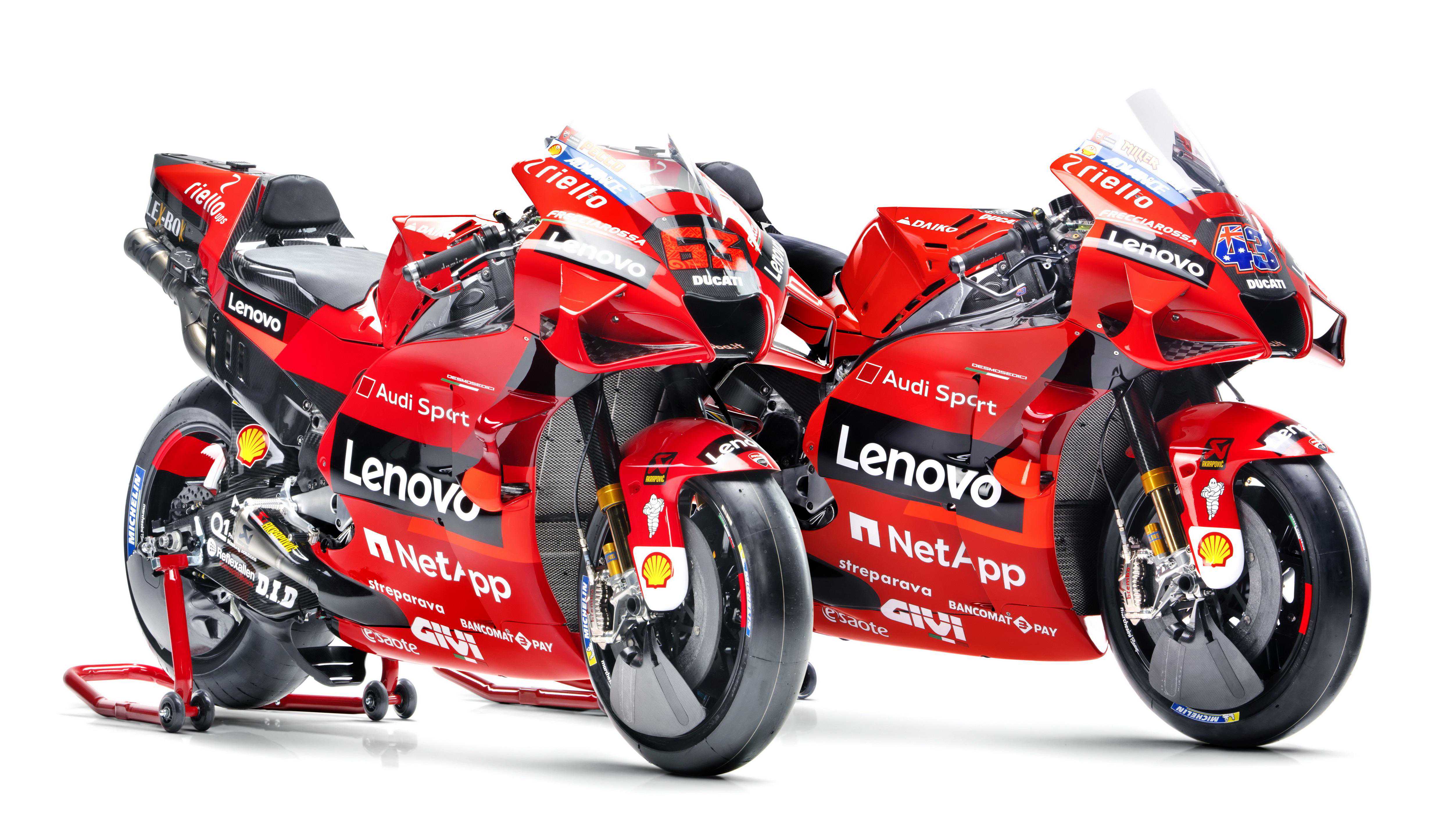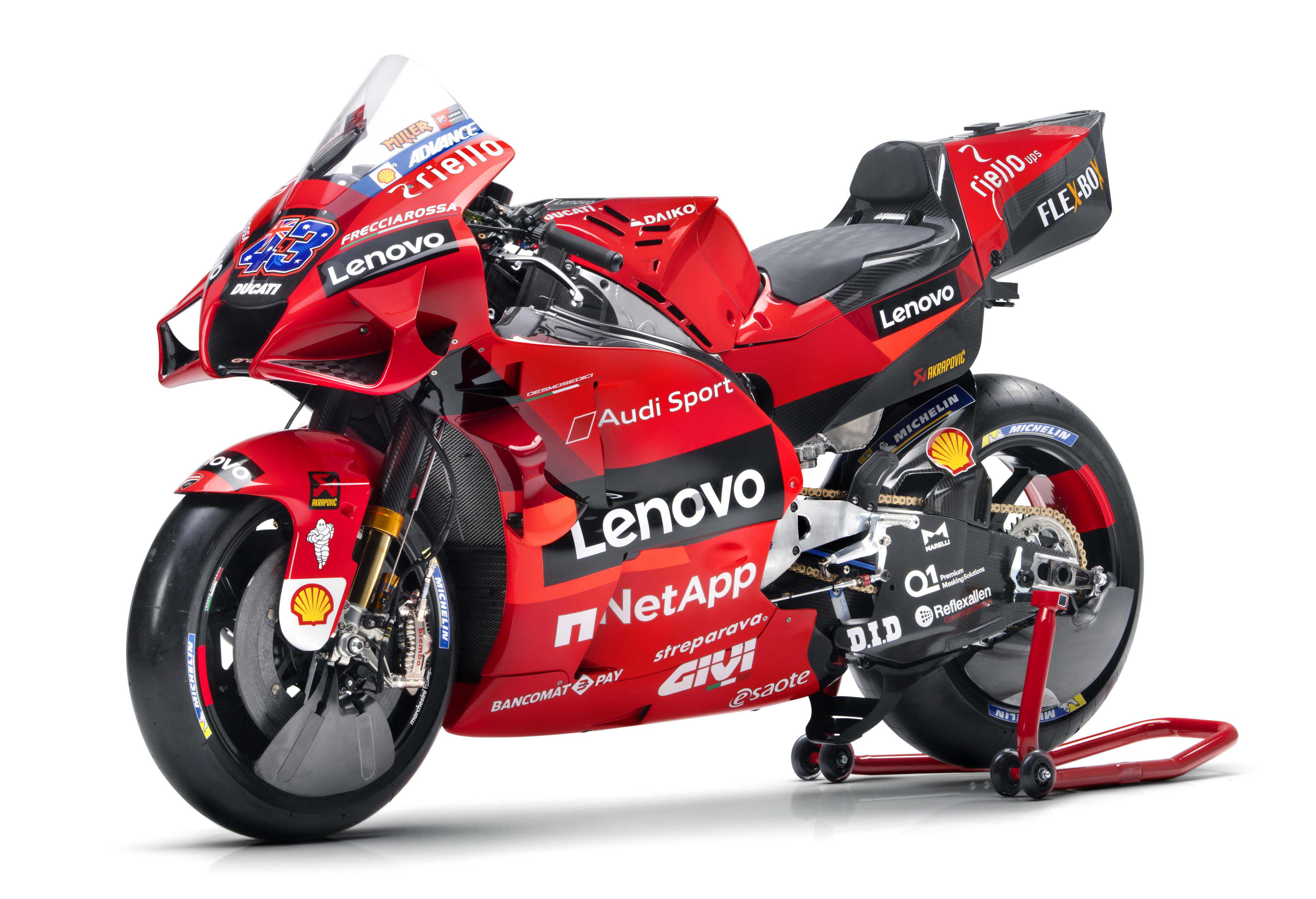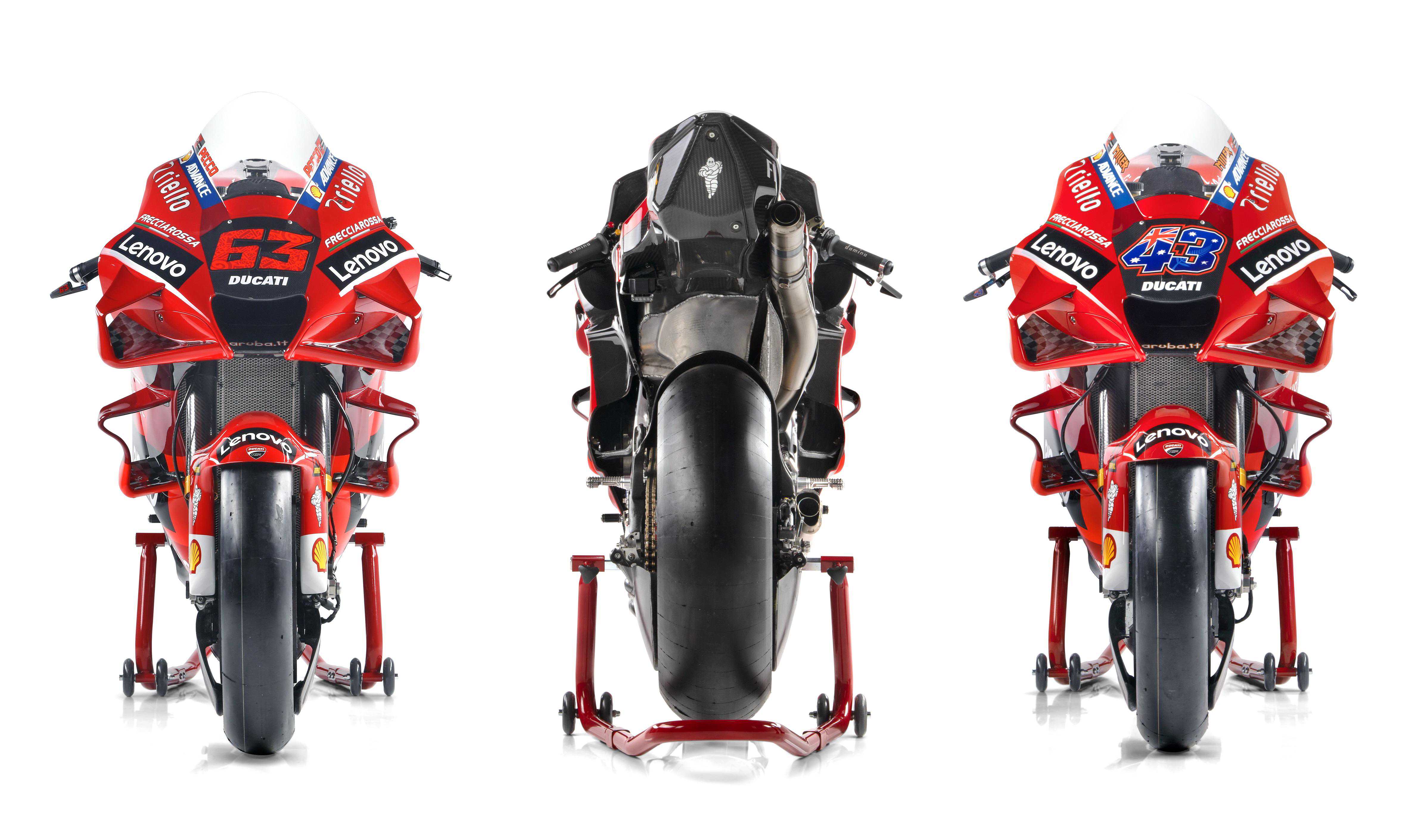 杜卡迪在昨天(二月9日)发布了MotoGP2021赛季的工厂车队和DesmosediciGP21工厂赛车的新涂装。中国联想则成为了车队在新赛季里的主赞助商,车队名为杜卡迪联想车队(DucatiLenovoteam)。