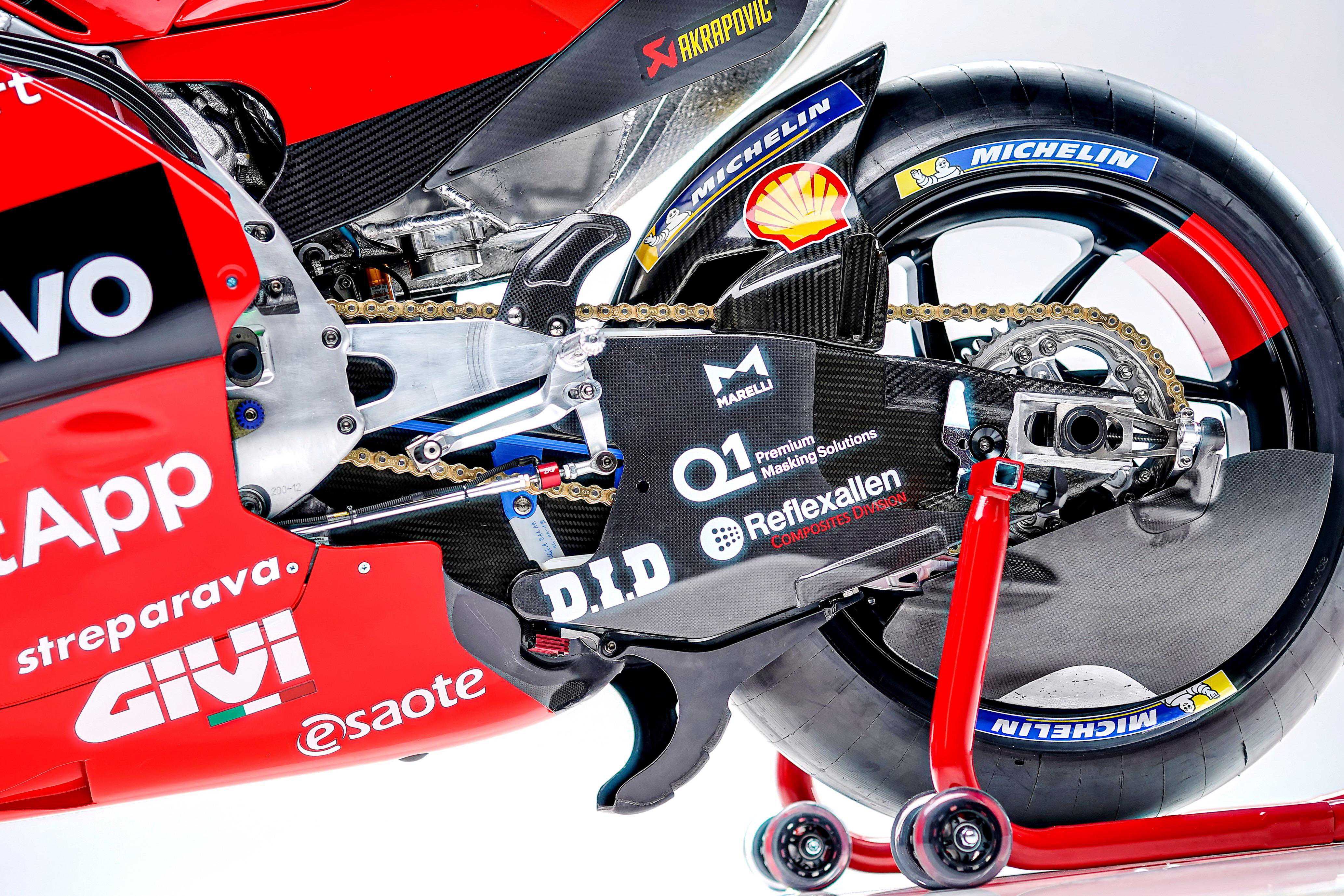 参考去年发布的赛例,今年的MotoGP工厂赛车、被禁止对发动机进行更新,只可以沿用去年的发动机。参阅杜卡迪发布的技术规格,有了一个新图案的DesmosediciGP21工厂赛车,沿用了V型90度四汽缸、DesmodromicDOHC汽动控制的每汽缸四汽阀、赛例所限定的排汽量1,000cc的发动机,最大动力输出超过250匹,干燥重量157公斤(赛例的规定是四汽缸赛车、最低干燥重量为150公斤以上)。
