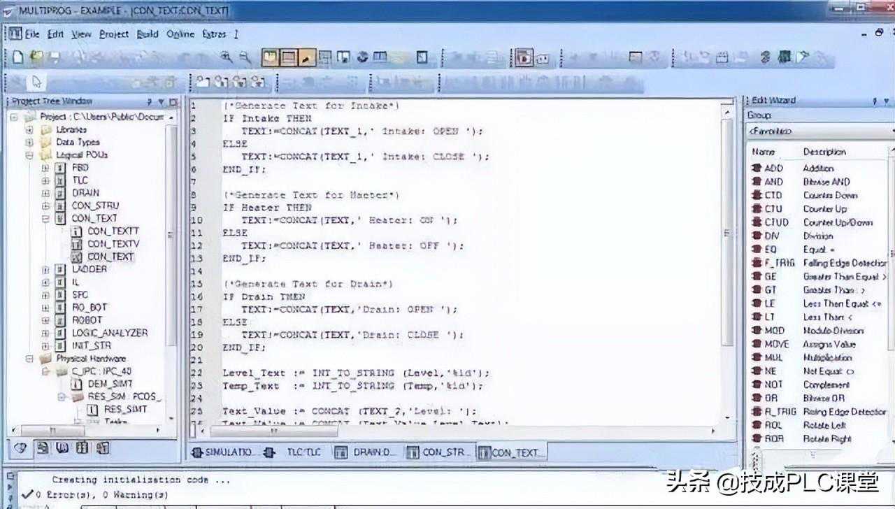 结构化文本语言表面上与PASCAL语言很相似,但它是一个专门为工业控制应用开发的编程语言,具有很强的编程能力用于对变量赋值、回调功能和功能块、创建表达式、编写条件语句和迭代程序等。
