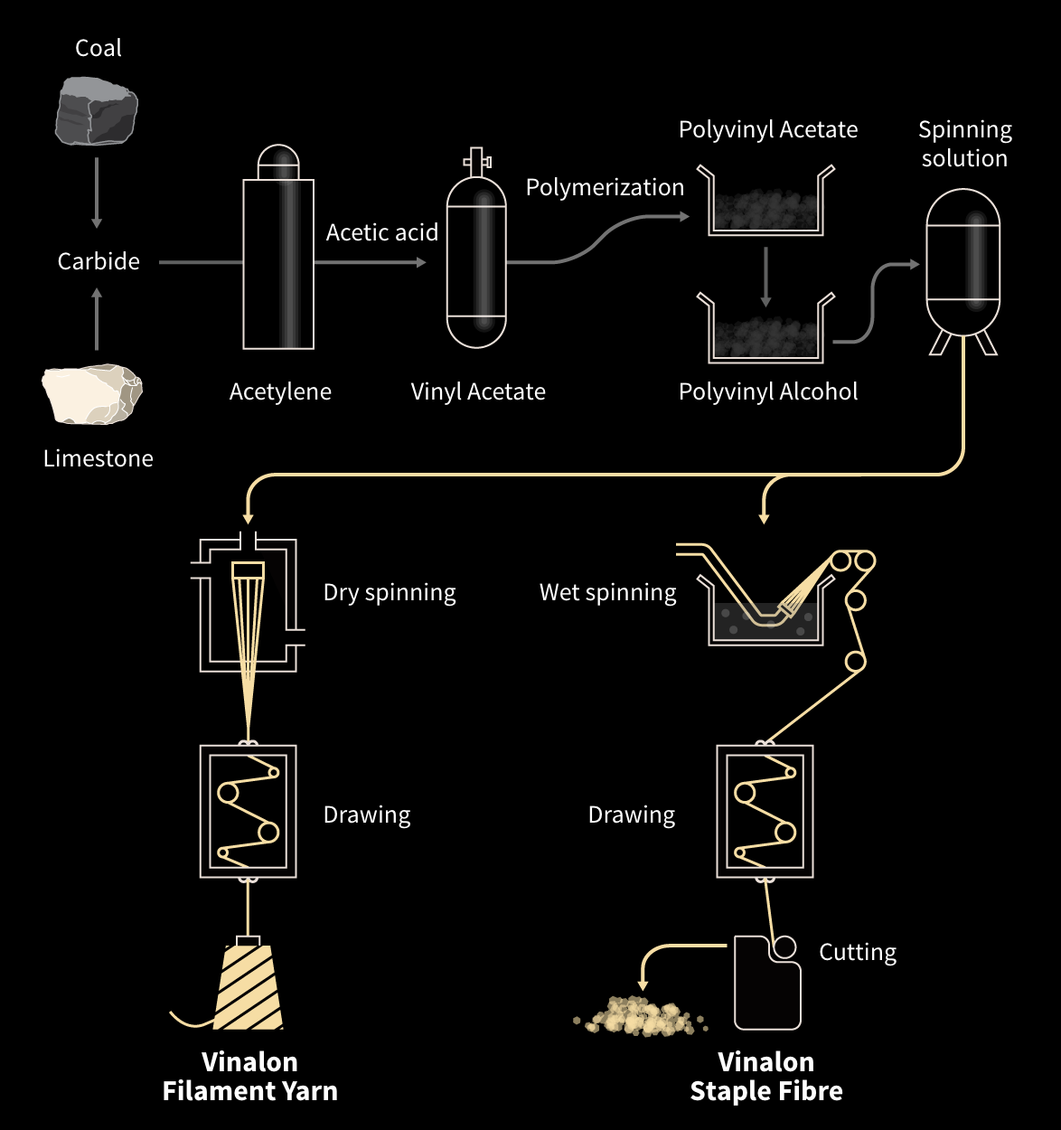 随后,该国的大部分纺织产品都开始使用维纶,远比传统的棉花更受欢迎。