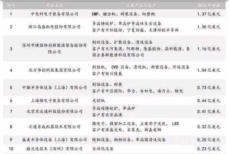 国内半导体设备十大制造商: