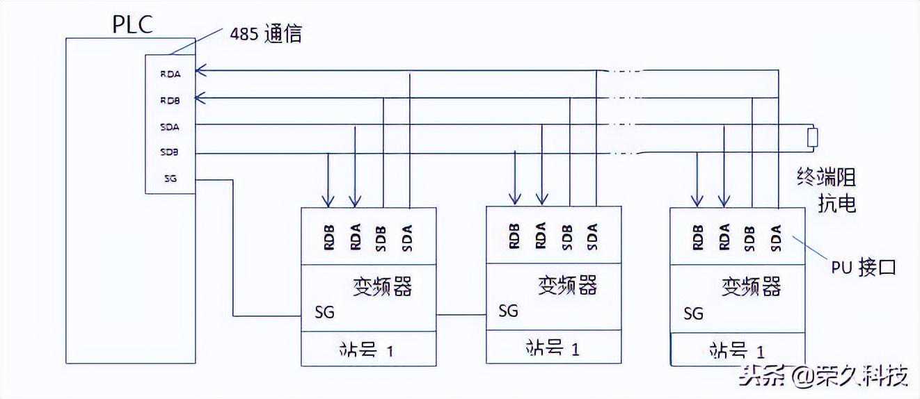 变频器与PLC进行RS485通信连接后,可以接收PLC通过通信电缆发送过来的命令,如果有多台变频器与PLC进行RS485通信连接,必须给每台变频器设置站号(使用参数,o~31),PLC向某台变频器发送命令数据时,数据的首端为站号。