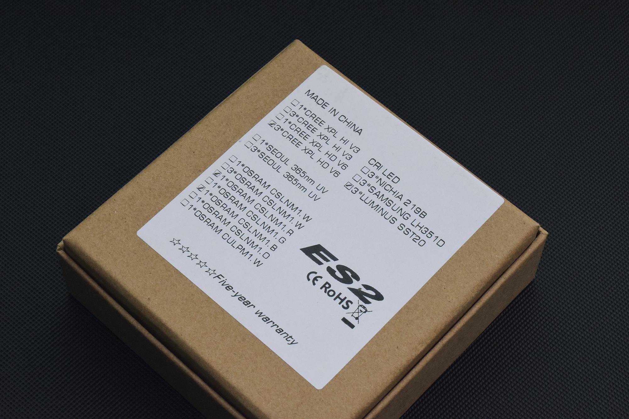 本人选购了四枚灯头,分别为橙色的三眼SST20(2700KCRI95)和黑色的3CREEXPLHD(均带有夜光片)以及欧司朗nm1蓝光和UV紫光(1*365nm)。当然大家也可以按需选购暖白、冷白、中白及不同颜色的灯珠,各灯珠两两搭配,组合方式可以有很多种(特意查了下,共计17款之多)。