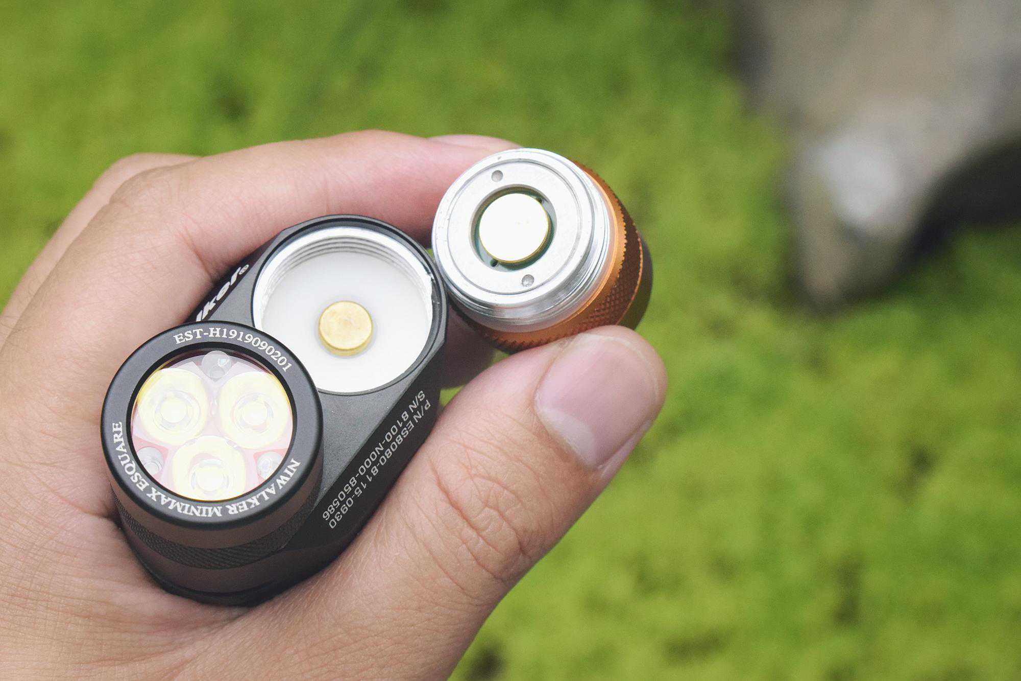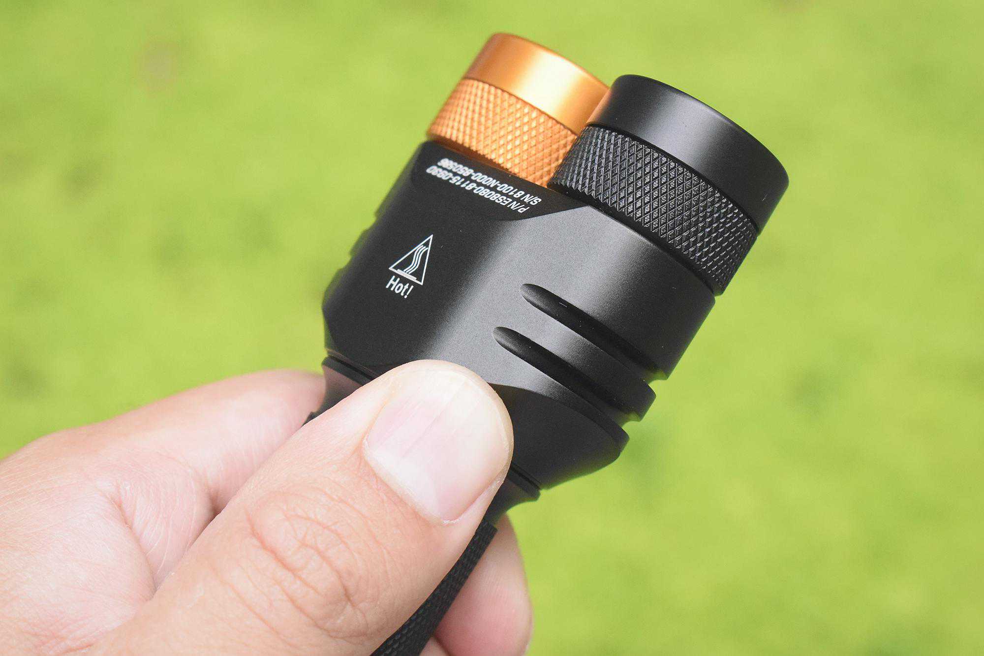 需要注意的是,ES2采用了内置信号管设计,在更换电池时不要按照习惯去拧尾盖,而是要将灯头与筒身拧开。另外因为手电非端面导电,故长期不用时需将电池卸下,不能靠拧松筒身来断电。