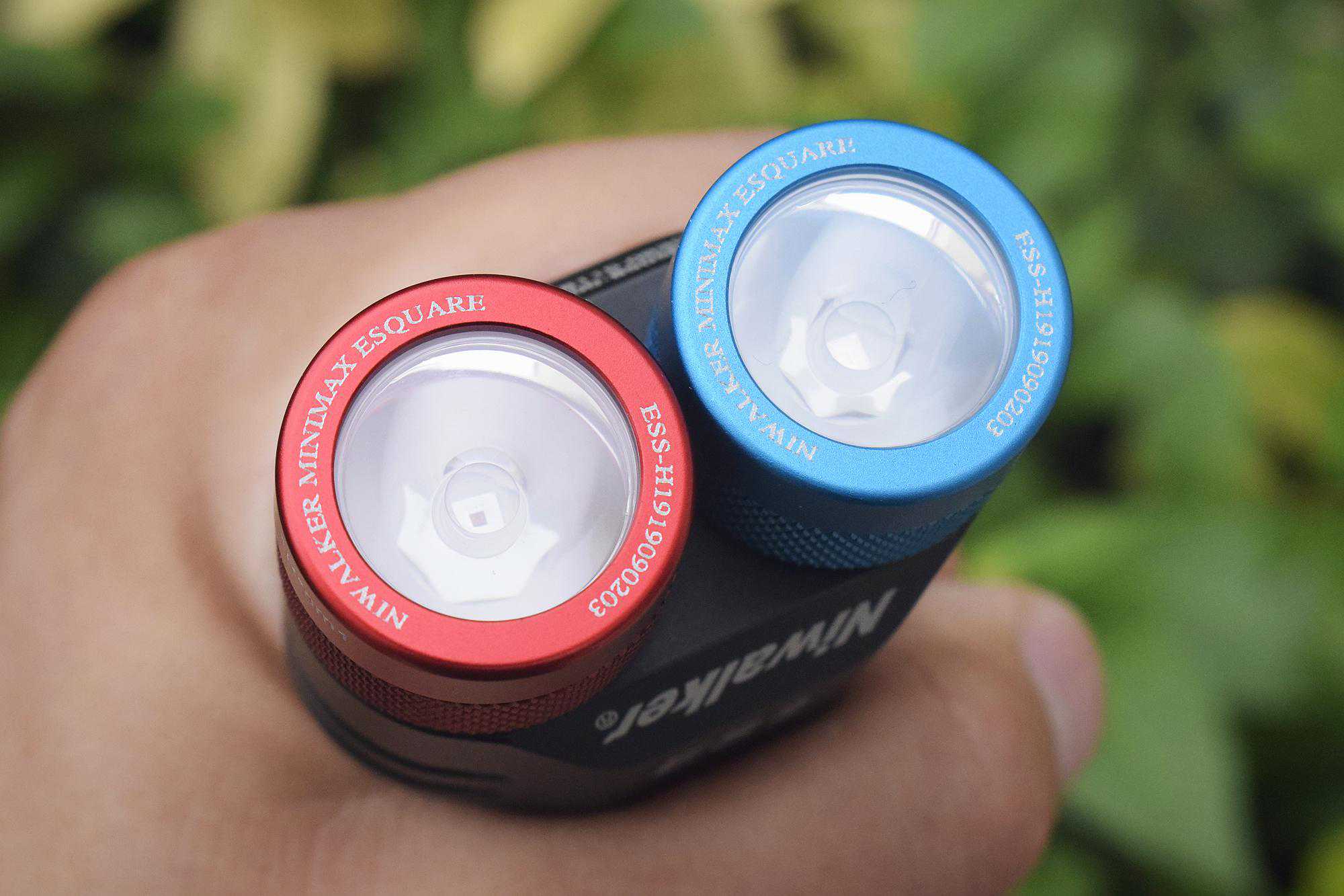 两颗红、蓝光灯头在安装好后的效果:整个手电的颜值更为美观时尚。
