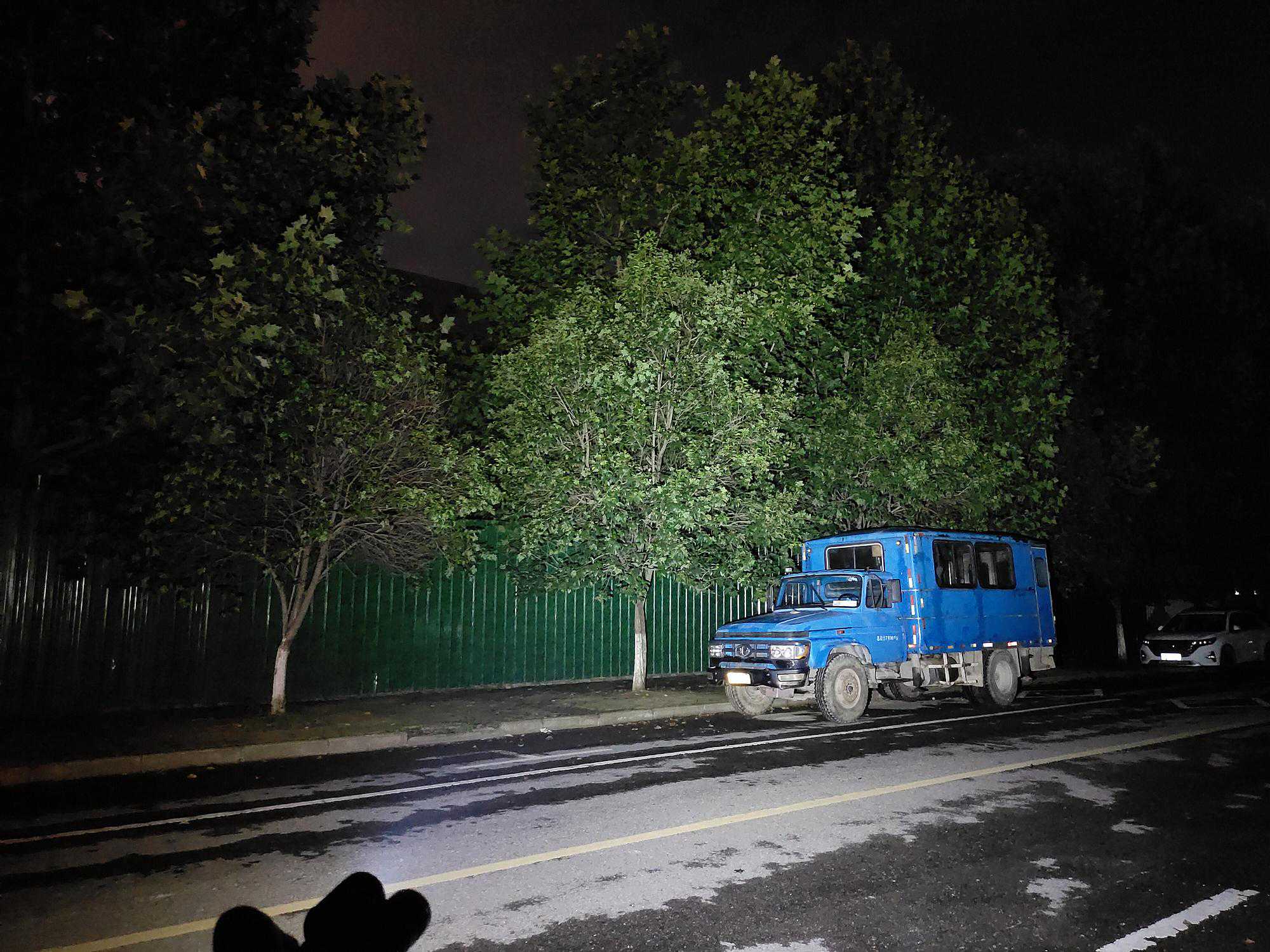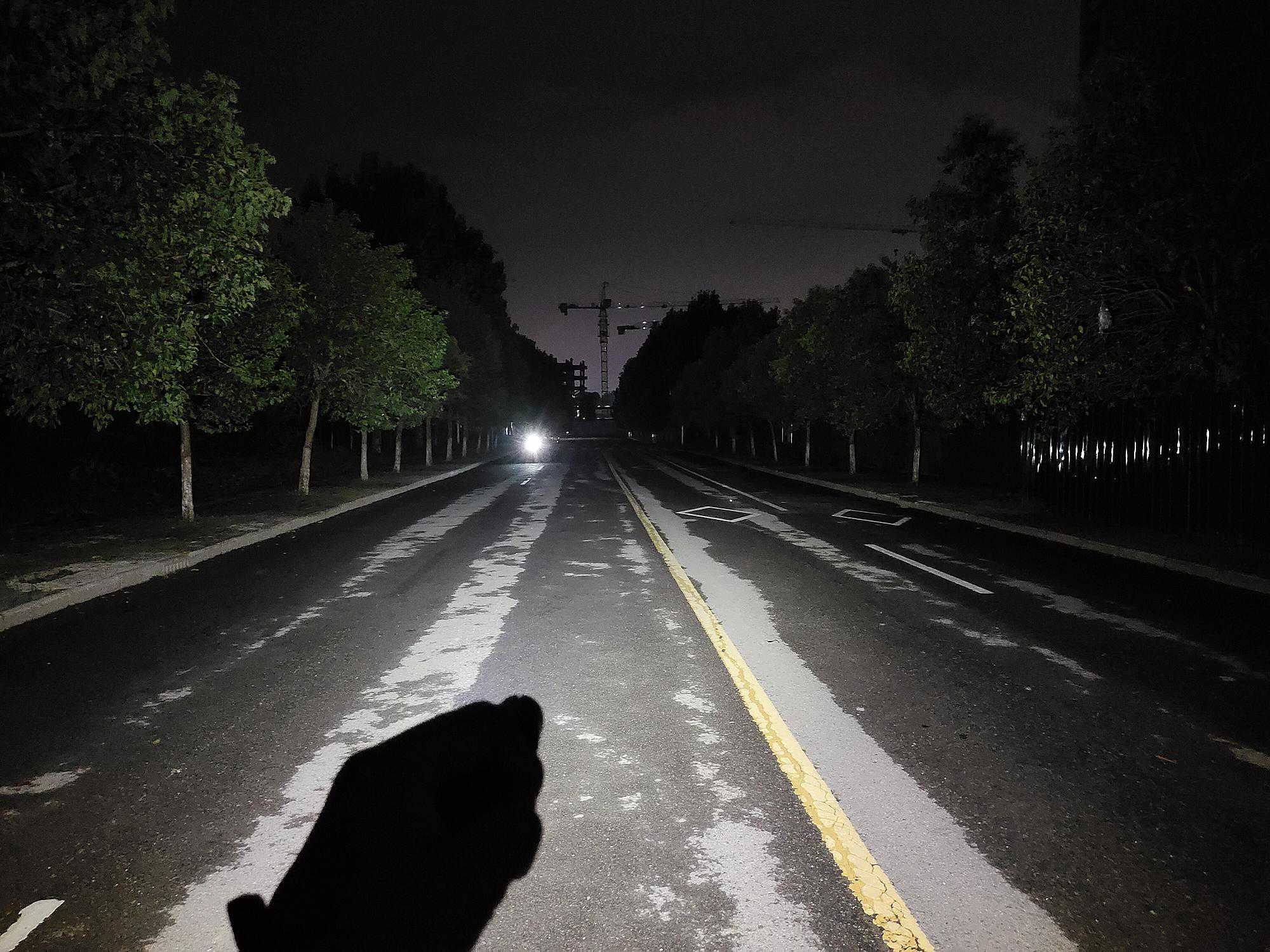 实际夜射表现,由于每款灯珠的亮度档位各有不同,直接调至最高亮度,其它各档就不一一具体放图了,总的来说各档位间都没有发现频闪的现象。首先是3*SST20:
