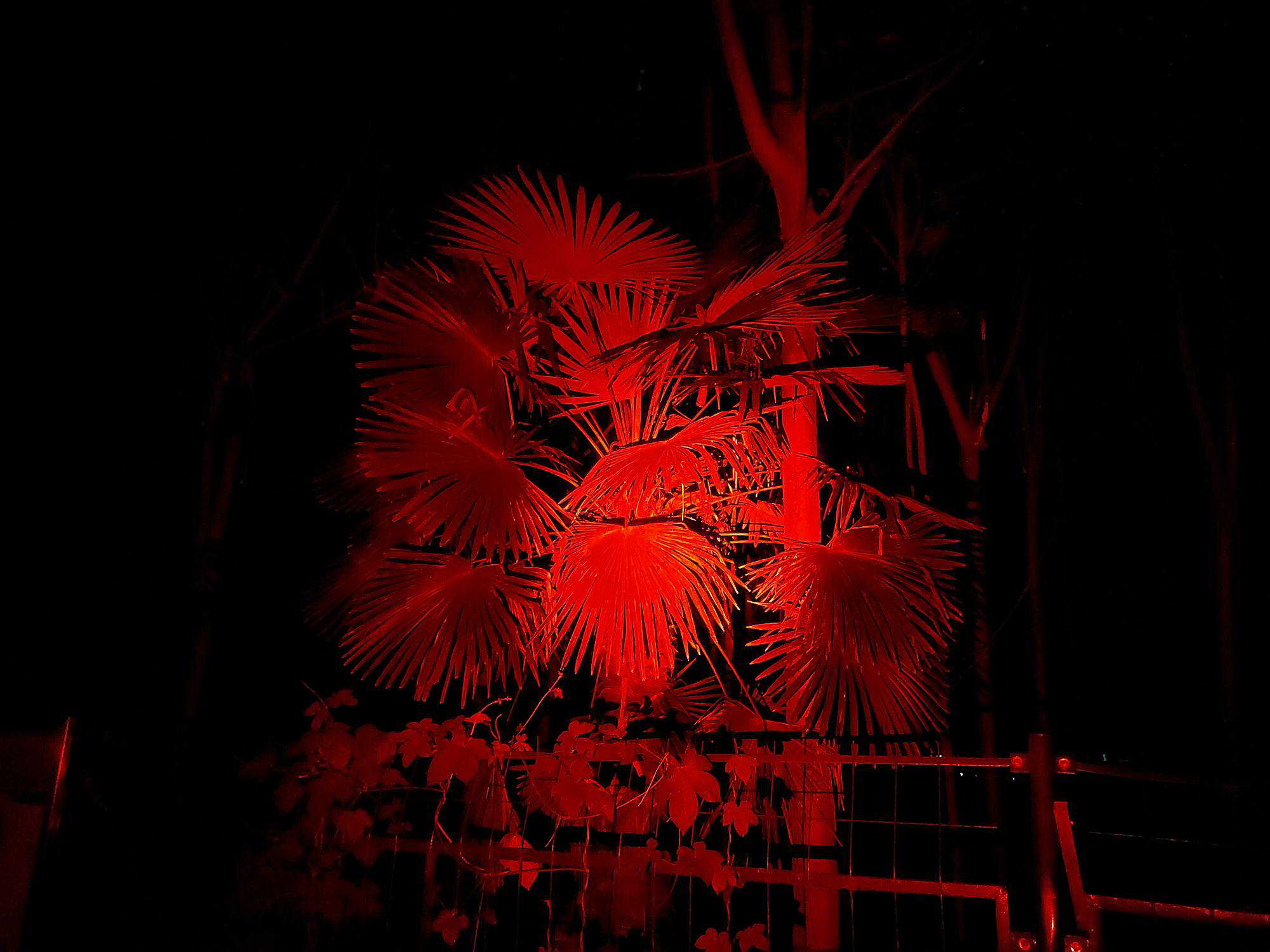 图为红光和蓝光分别照亮后的应用场景: