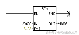 以这个指令举例,我们将双字VD600的数值以FMT=16C9的意思是输出缓存区大小为12个字节,小数点显示为逗号,保留一位小数点。比如说VD600=12134.64,转换后,