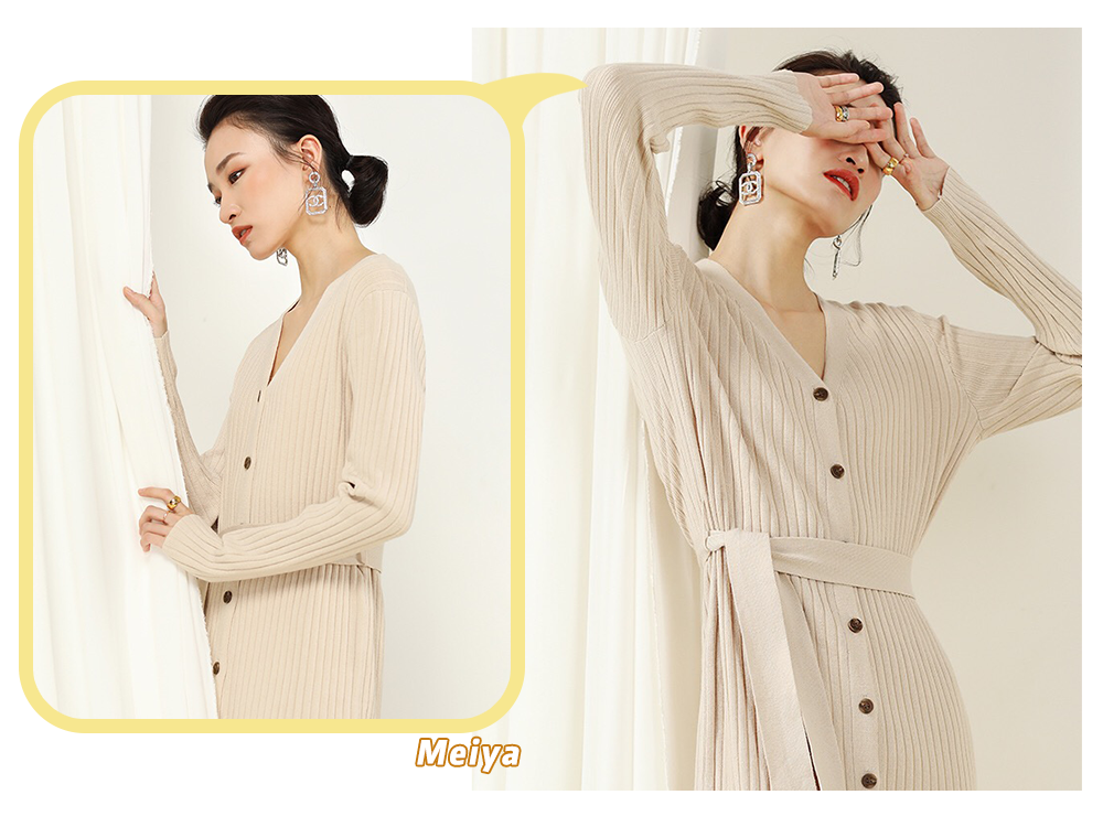 在芽芽看来,针织裙无疑是最容易勾勒出女性线条美的单品,而且现在针织裙的元素不再单一,像polo、开衩等元素都能相融合,有种极简的时髦感。