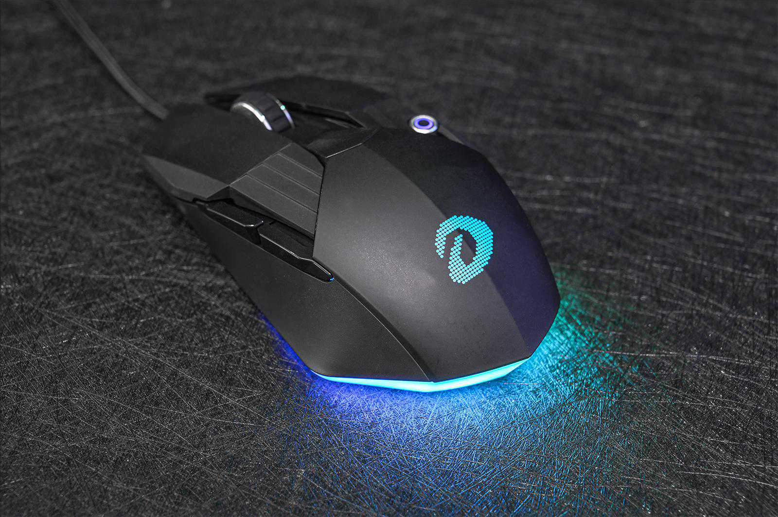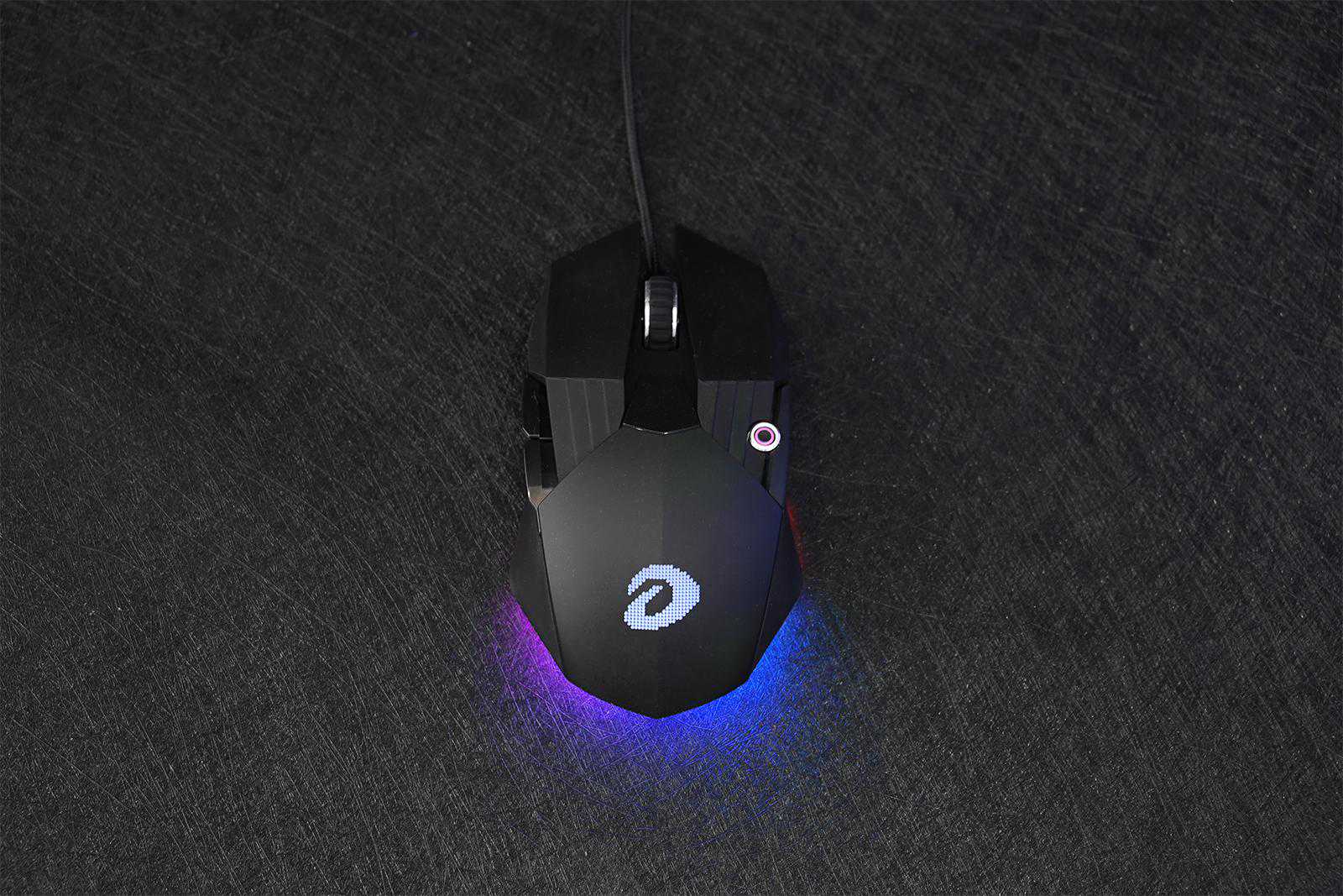 其实,达尔优A970依然是一个六键的游戏鼠标,左右中(滚轮)三个,两个快捷键。而常用的DPI键就变成一个发光的小眼睛,有点萌。