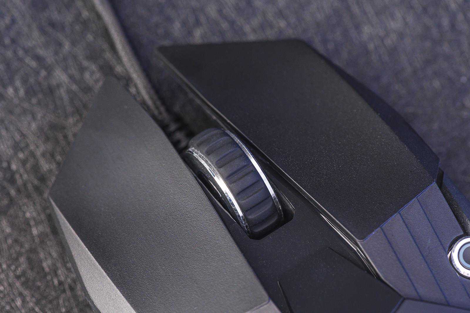 左右键的长度和形状都是完全一致的,典型的对称型鼠标。滚轮方面,也是最通用的橡胶大滚轮,有金属包边,手感不错,就是没有了常见的背光,这是有点小意外。