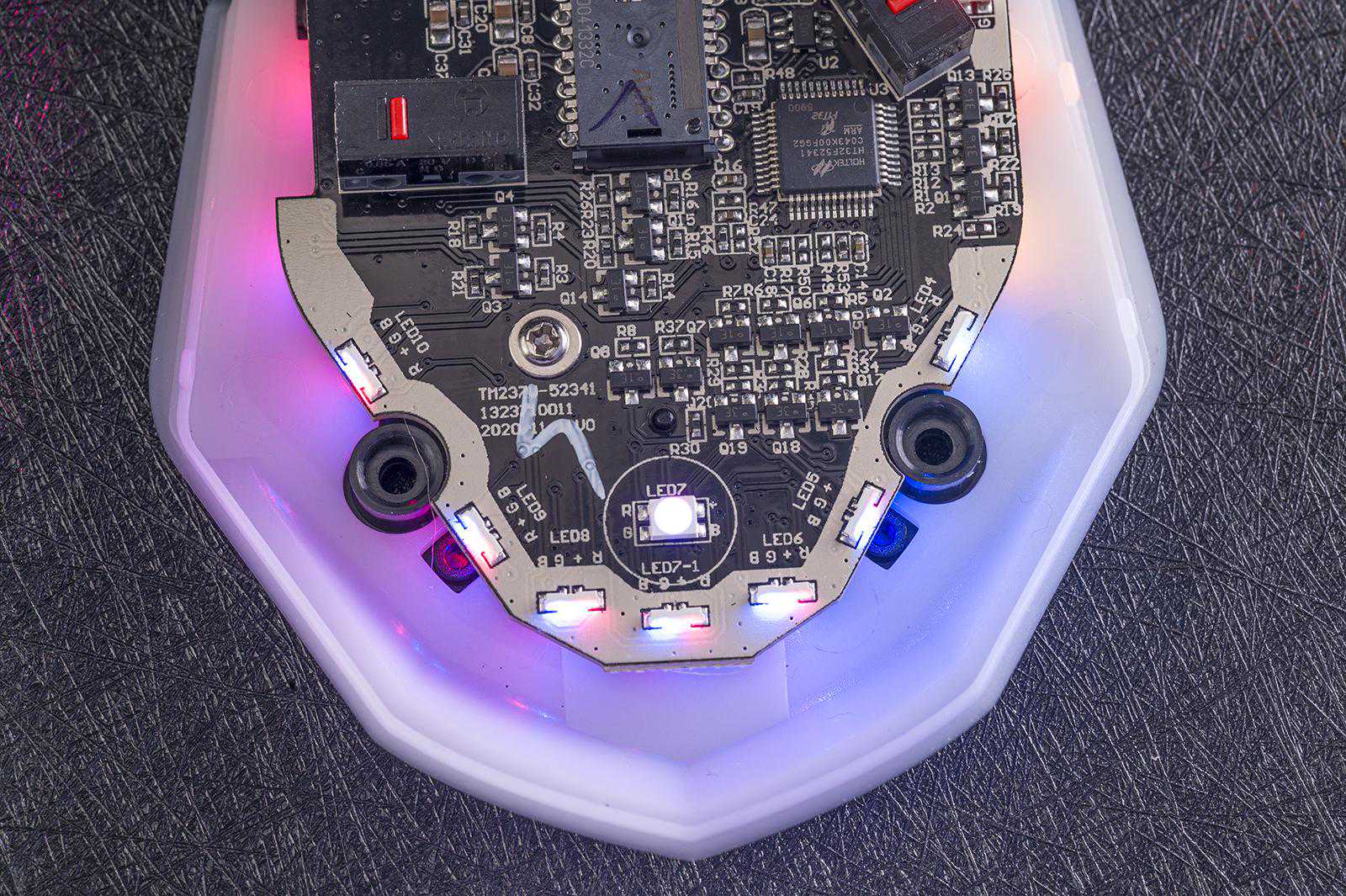 内部的做工也不错,大厂范儿,八颗发光LED有点帅,配合驱动还能玩出更多个性设置。