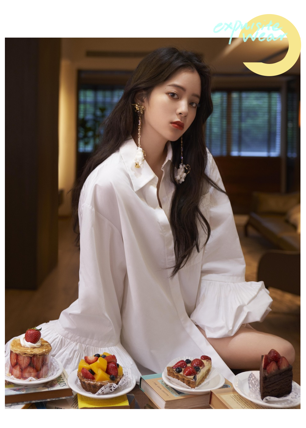 对于芽芽来说,百褶半裙是最经典的款式之一,给人一种慵懒柔美的感觉。尤其是和西装衬衫相搭配,半裙的垂坠感平衡上衣的硬朗,带有一种流动的美感。