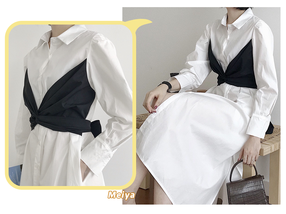 冷淡风显瘦假两件收腰衬衣连衣裙