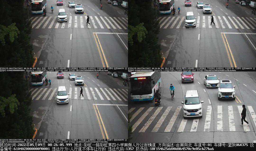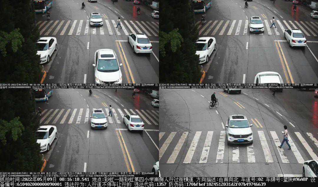 不礼让行人图01陕A7AP89违法时间:2022年5月9日08:10违法地点:彩虹一路彩虹第四小学南侧人行过街横道图02陕A96A8P违法时间:2022年5月9日08:16违法地点:彩虹一路彩虹第四小......