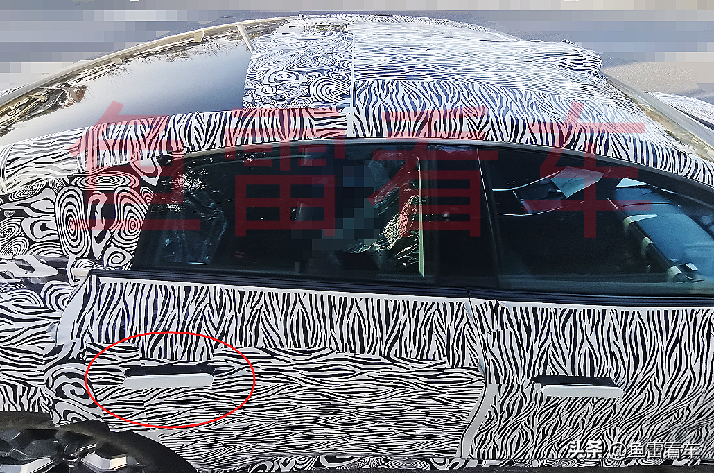 这张不是看车顶的,都说了全玻璃化的车顶设计,这图主要是看车门把手的,注意车门把手外观是两侧椭圆过渡,而E03则是菱形外观,还有注意车门部分,能够看出也是无框车门结构,也就是说除了外覆盖件造型不同,车身结构完全一致,这是佐证之一。