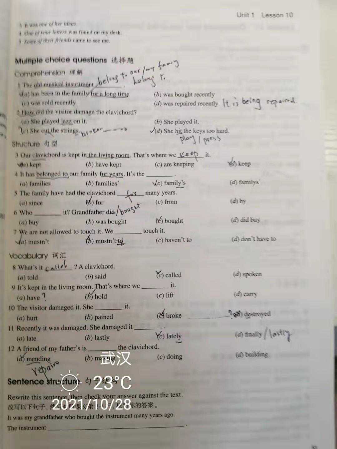 ●Theoldmusicalinstrumenthasbeeninthefamilyforalongtime.