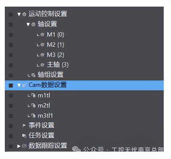 右键Cam数据设置-添加-CamProfile,来添加新的凸轮表,默认名称CamProfile0,添加3个凸轮表,重命名为“m1tl”、“m2tl”、“m3tl1”。