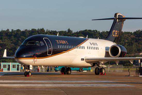 9月25日,在2021珠海航展前夕,中国商飞ARJ21CBJ公务机型号首次在珠海航展亮相。