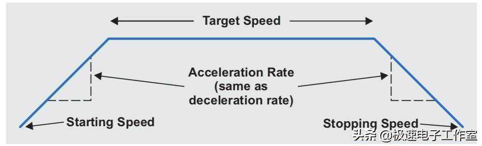 我们知道对于直流马达而言,可以通过升高电压(若是使用脉宽调制,则通过增加占空比)可以控制马达的速度快慢。但是,对于步进马达,改变其驱动电压不会对速度产生任何影响。若以任意速度启动步进马达,速度过快时会带来意想不到的一些结果,比如步进电机失步、堵转等问题,而这些问题都是需要在应用中避免出现的,为此,我们需要让步进电机从一个较低的速度慢慢加速到指定速度的过程。