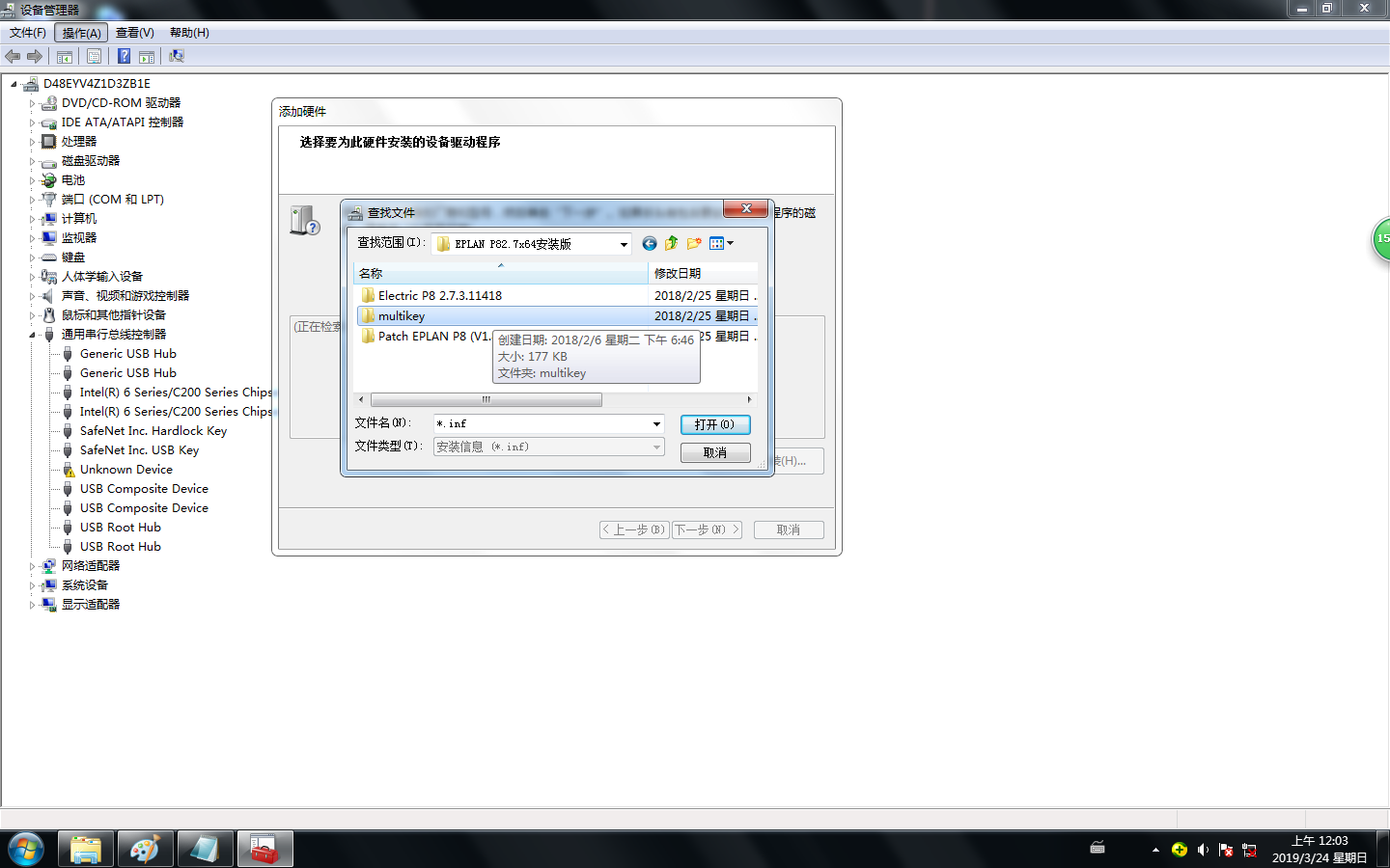 此时需选择安装包内MultiKey64里面的