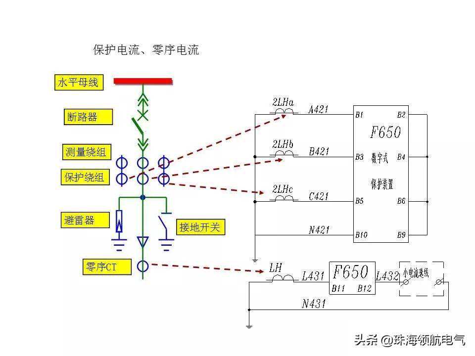 下图为保护电流与零序电流的接线图,大家可以和上图做个比较,看出不同点了吗?