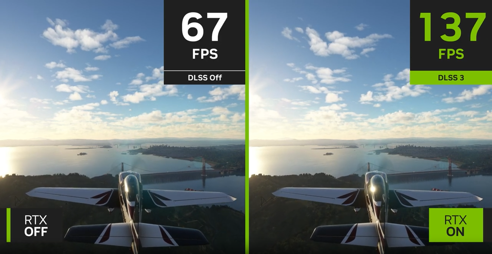 DLSS3能够利用AI和RTX40系列GPU上的第四代TensorCore和光流加速器,在兼容DLSS2的基础上,新增了帧生成功能,可以在两个真实帧之间插入AI推算出的全新帧,从而实现帧率的倍增。同时,结合DLSS2的超分辨率功能,AI能够重建多达八分之七的显示像素,与没有DLSS相比,游戏性能最高可提升4倍!