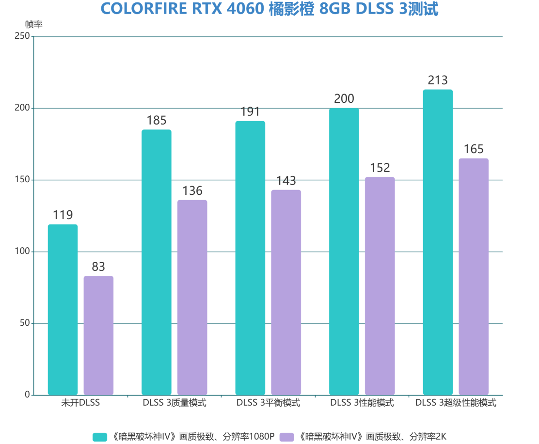 此外,笔者还针对不同分辨率下的《暗黑破坏神IV》做了DLSS3的测试。实测使用1080P和2K两种分辨率。