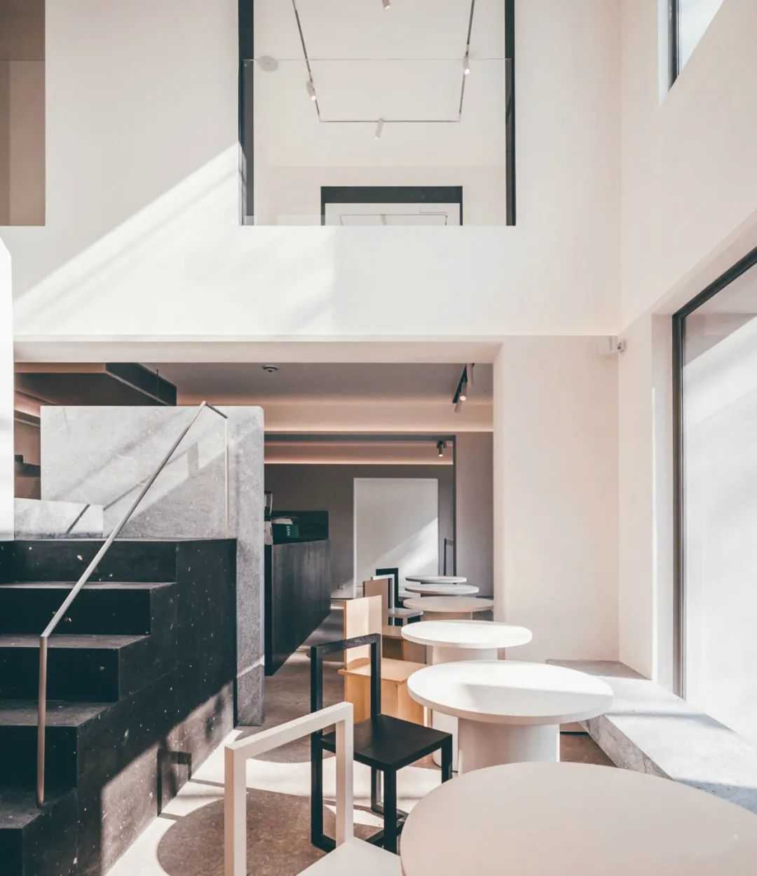 他家集咖啡、艺术空间和购物为一体,整个店内空间分为两层,一层是喝咖啡吃简餐的座位区,二层把包括了座位区和展览区。