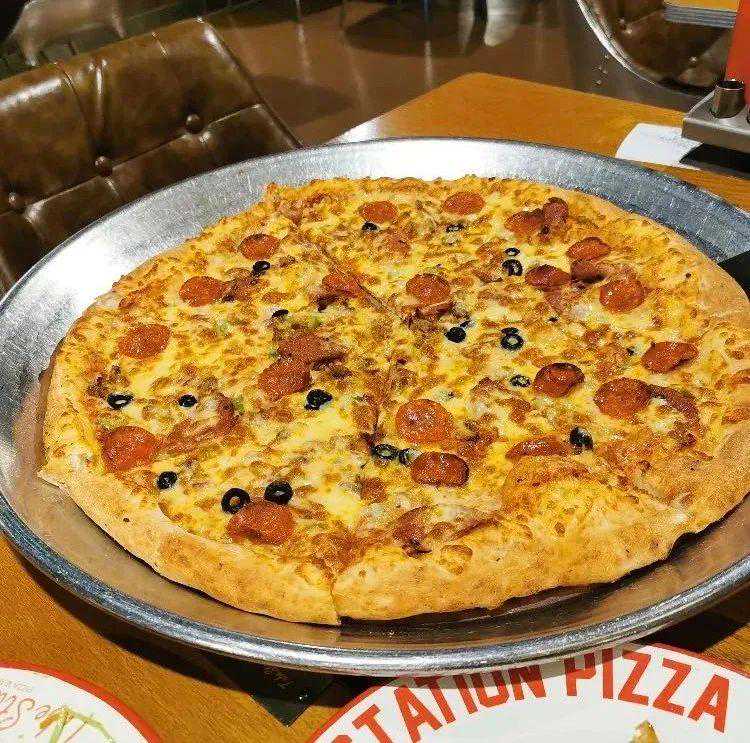 他家的披萨是出了名的大,每次端上桌都会惊叹到在场所有人,一个人抱都抱不住!成为一道到店必打卡的现象级菜品。