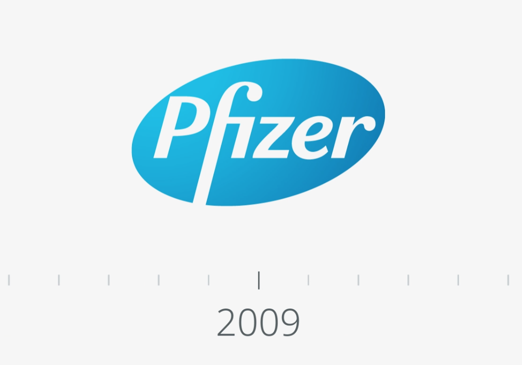 2009年,辉瑞收购了惠氏,思睿高(Siegel+Gale)重新设计了logo:蓝色小药丸倾斜了一些,原来的半衬线字体变成了无衬线,但整体思路仍然没有改变,蓝色的药丸图表中嵌入Pfizer的字样。