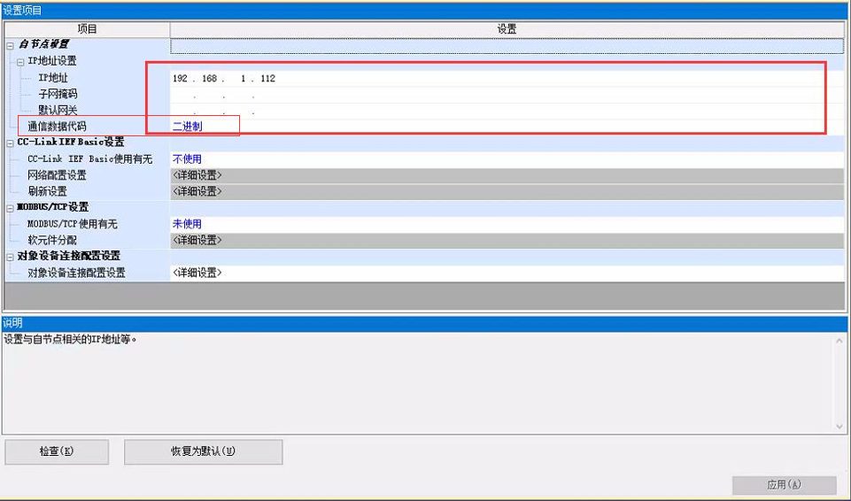 如Q系列Q06UDEH上的参数设置,Q/L系列要选择MC协议通信。