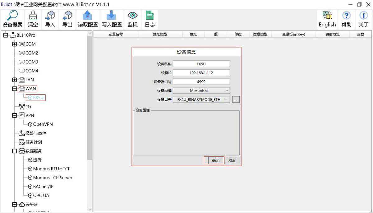 添加WAN口设备三菱FX5U