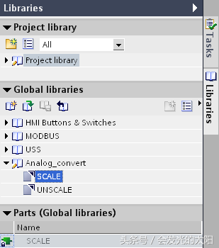 步骤4:在添加程序库后,FC105(SCALE),FC106(UNSCALE)即可以被添加到用户程序中。