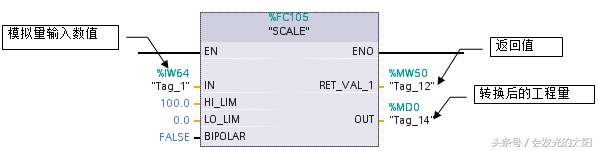 1.用户可以使用本例子所提供的FC105将模拟量输入模板的整数数值转换为工程量数值。对于FC105的输入/输出参数解释如下: