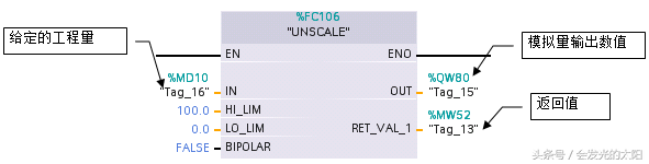 2.用户可以使用本例子所提供的FC106将工程量值转换为模拟量输出模板所需要的数值。