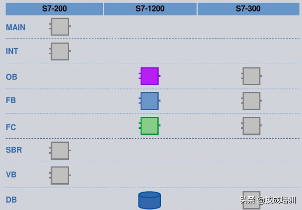 还有,它们的程序结构也不一样。S7-200的程序结构分为主程序、子程序和中断程序。S7-1200的程序结构分为OB块、FB块、FC块、DB块。