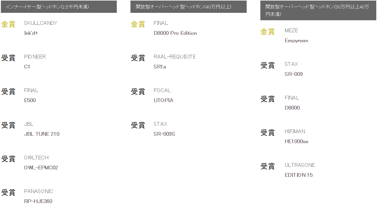 受賞PANASONICRP-HD600N、DENONAH-GC25NC、PIONEERS9wirelessnoisecancelling