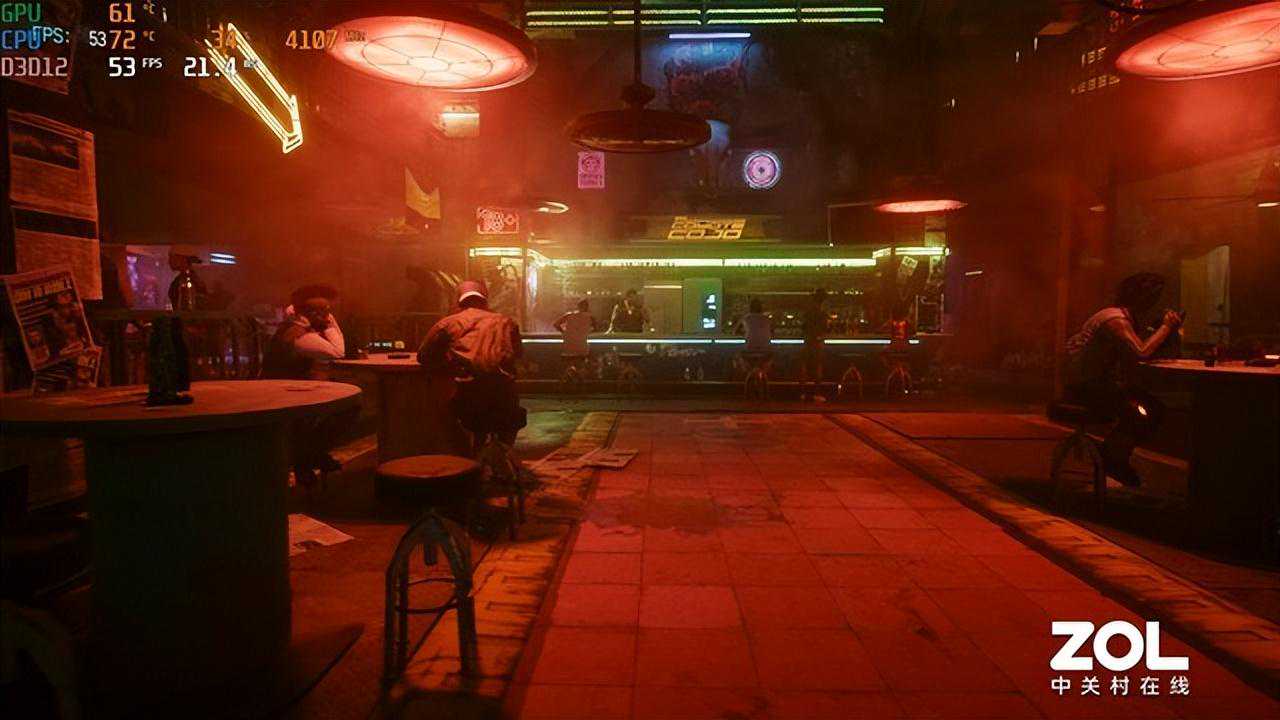 最后一款测试游戏为《赛博朋克2077》,这款游戏完美支持光线追踪,因此只有在高分辨率下开启光追特效,才能完全感受到这款游戏的魅力。而冲锋坦克ProGP76HX强悍的性能表现,自然能够给玩家带来这种完美体验。