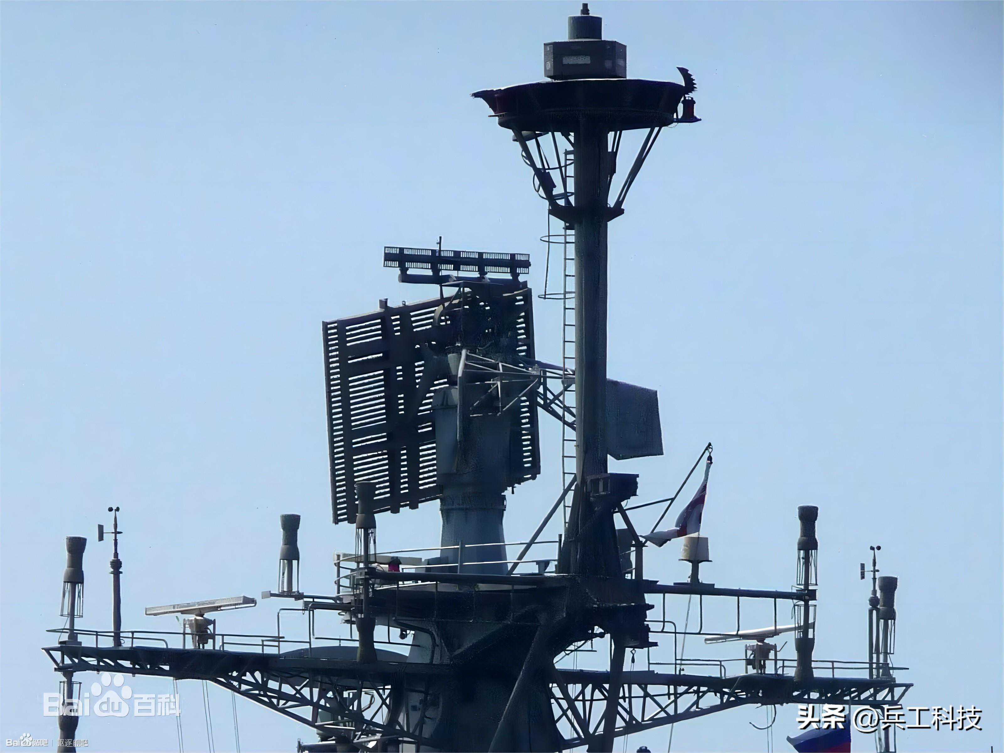 其中,LW08型对空搜索雷达由荷兰信号设备公司生产,是LW系列中一种较新型大功率相参雷达,在雨滴和背景杂波下具有良好的检测性能。可在270千米外发现雷达反射面积2平方米、高度25900米的目标。DA05型对空/对海搜索雷达由荷兰信号设备公司生产,除用于空、海搜索外,还可为火控和武器指挥系统提供目标指示。MP-710型“顶盘”三坐标搜索/制导雷达平时担负全舰的对空搜索警戒任务,战时的主要任务是向SA-N-7“施基利”导弹武器系统提供目标点迹。雷达天线由2座一维频扫的单面阵背靠背组成,平时转速为6转/分,战时为12转/分,数据率为1次/2.5秒。可在150千米外发现雷达反射面积2平方米、高度30000米的飞机),30千米外雷达反射面积0.05平方米的导弹,性能先进。