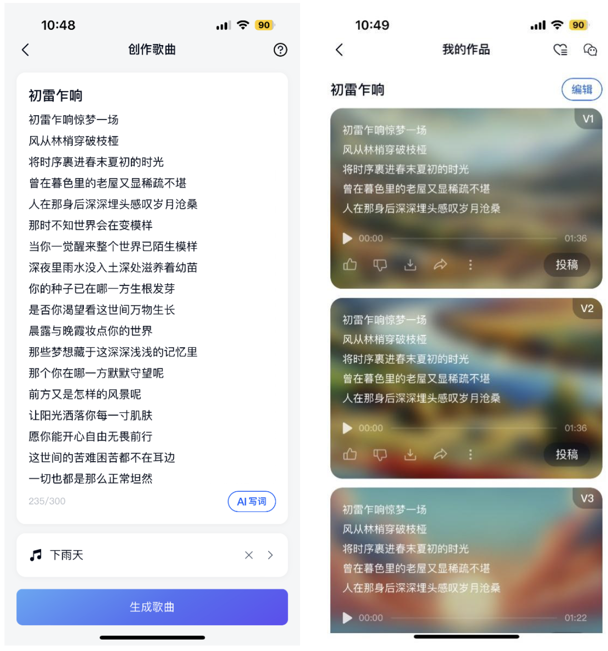 歌名、歌词,包括歌曲的参考风格,均可随时修改替换,同一首歌词,可以生成五六七八九……种风格,只要你有无限的风格创意,就能获得无限的音乐创作!强大,真是强大。