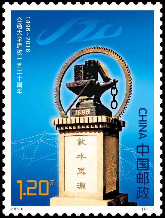 交通大学建校一百二十周年纪念邮票通过交通大学共同的文化符号“饮水思源碑”,体现五所交大同根同源、交融互通的历史传承和文化积淀,寓意交通大学饮水思源的光荣传统和育人使命代代相传。