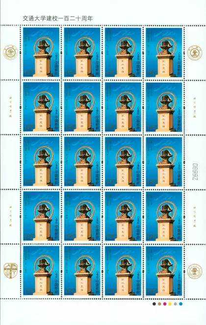 《交通大学建校120周年》纪念邮票1套1枚,全套邮票面值为1.20元,将于4月8日正式发行。纪念邮票主题突出,内涵丰富,特色鲜明,象征着交通大学为中华民族伟大复兴的蓝图作出新贡献的宏愿和使命。邮票紧扣“交通大学建校一百二十周年”主题,以铸有交通大学校徽的“饮水思源”纪念碑为主图,背景的蓝色渐变彰显了交大人海纳百川、放眼世界的胸怀和抱负,上下链接的网格体现了“天地交而万物通”的厚重底蕴。