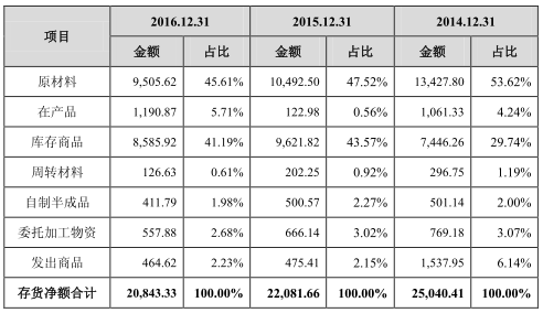 其中,原材料占存货的54.29%、53.62%、47.52%、45.61%;库存商品占存货的36.12%、29.74%、43.57%、41.19%。