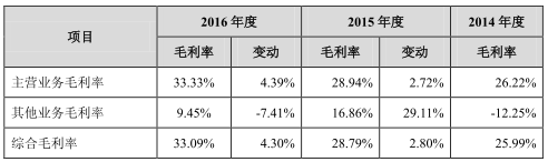 2013年至2016年,春风动力综合毛利率分别为24.18%、25.99%、28.79%、33.09%。