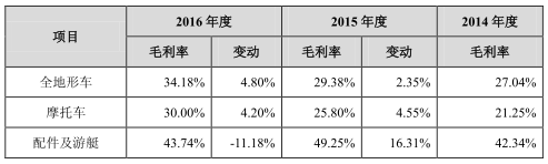 钱江摩托车2016年年报显示250cc以上大排量摩托车销量大幅上升,其2016年毛利率因此较2015年显著上升;报告期内春风动力摩托车毛利率与其变动趋势一致。